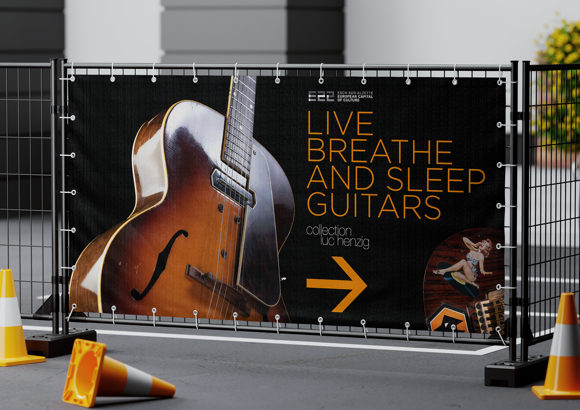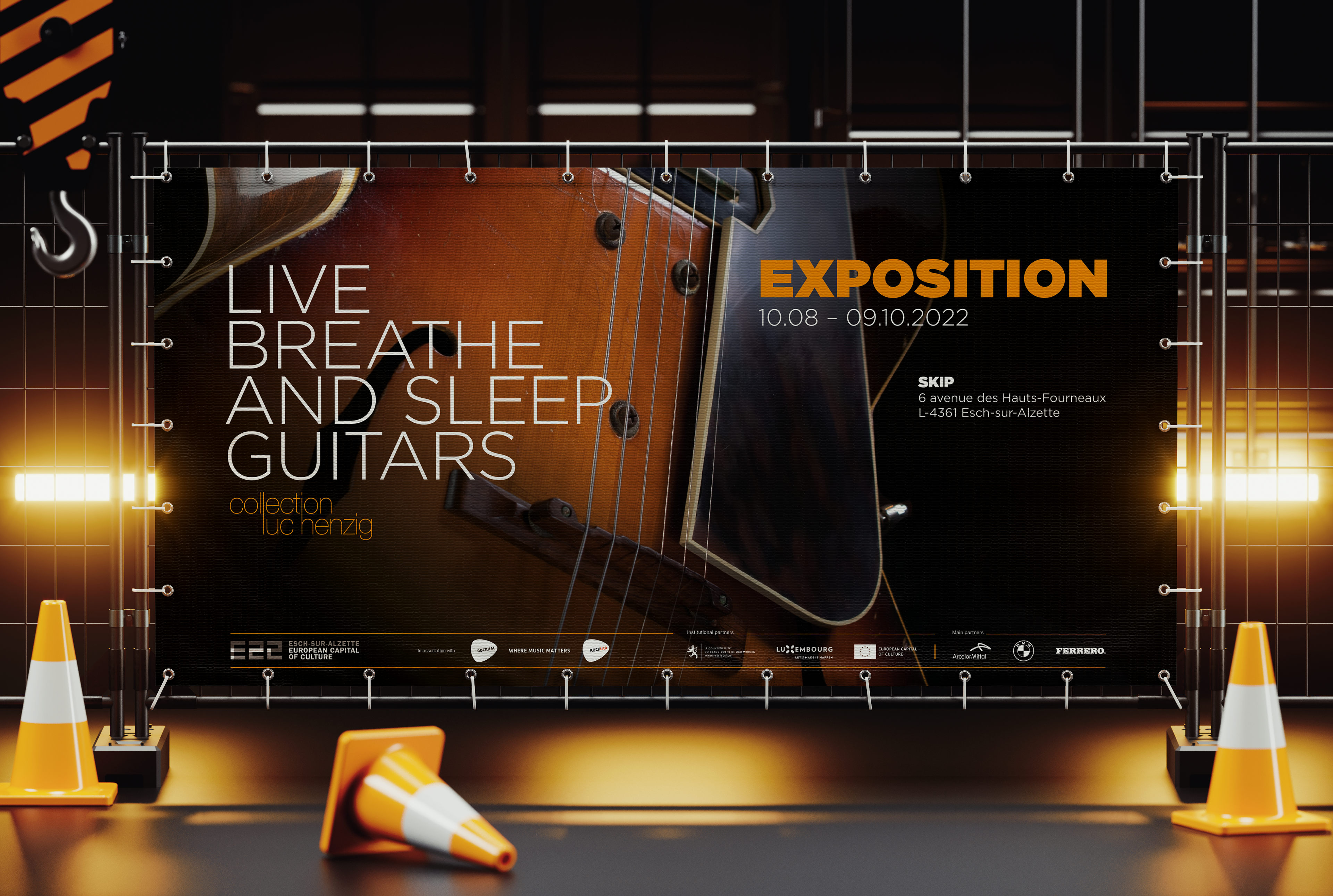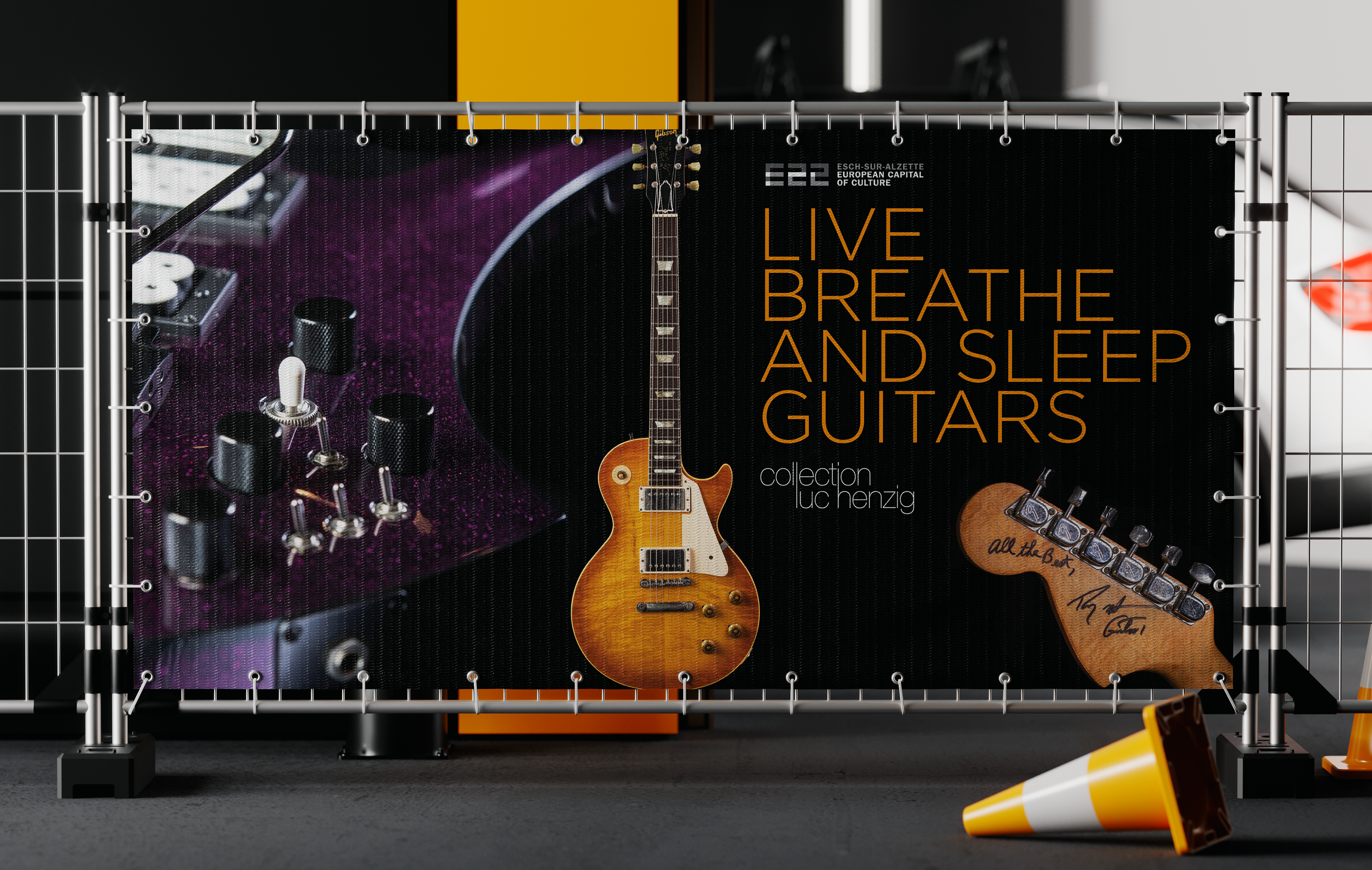 Expo guitares : brochure / affiche / disque vinyle / coffret / bâches / …