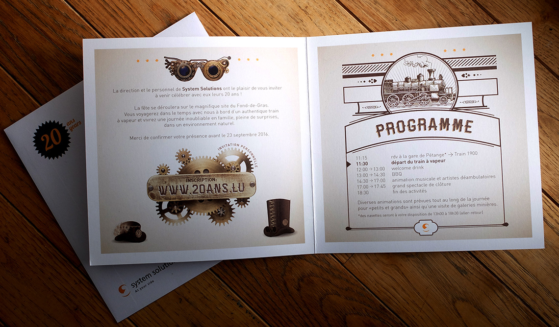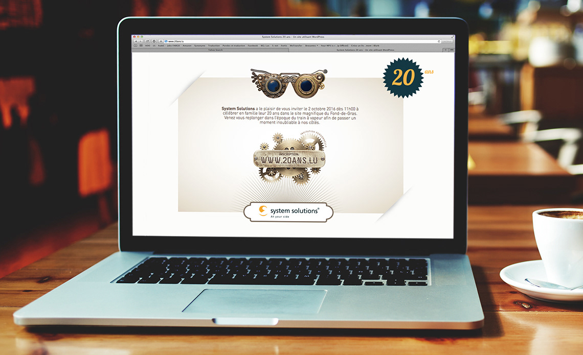 Communication autour de la fête organisée à l'occasion des 20 ans de System Solutions.
